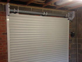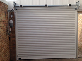 | 2no White compact security roller shutters. Internally installed to training room windows. |