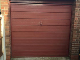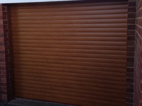 Two Garador Golden oak Sherwood up and over garage doors. |